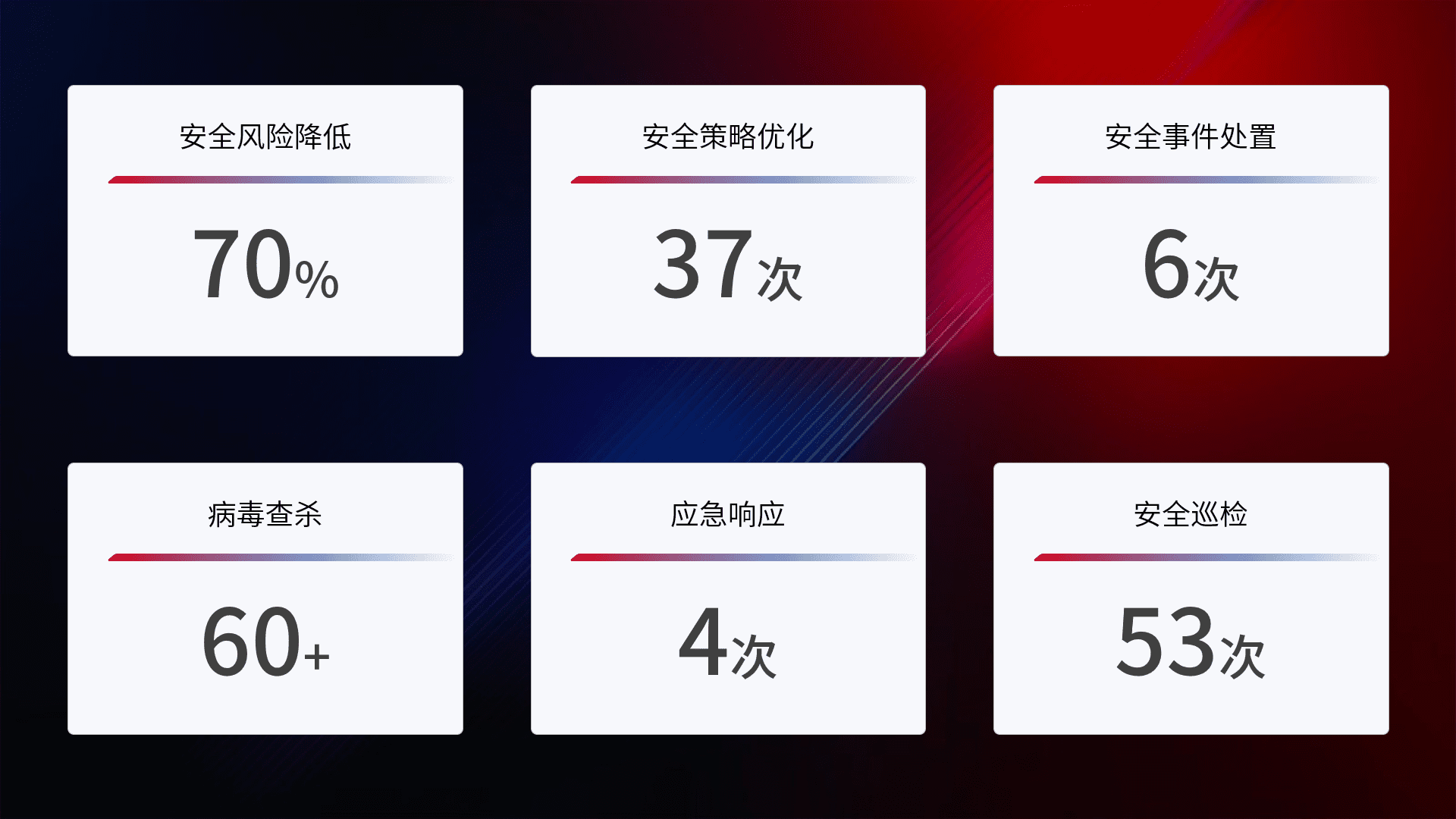提供全面的安全事件报告体系,,包括处置报告、、、周报、、、、季度和年度总结,,,,结合持续监控,,帮助客户深入了解网络安全状况。。。